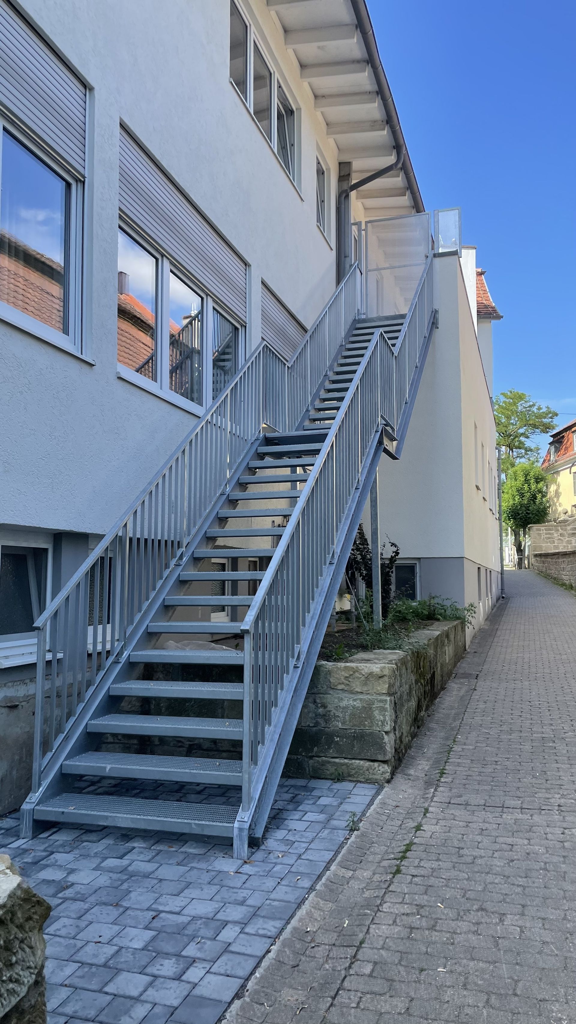 Unsere Fluchttreppen bieten zuverlässige Sicherheit für öffentliche und gewerbliche Gebäude. Sie erfüllen alle relevanten gesetzlichen Anforderungen und überzeugen durch langlebige Materialien, witterungsbeständige Ausführung und durchdachte Konstruktion. Ob als geradläufige Treppe, Spindeltreppe oder individuelle Sonderlösung – wir planen und fertigen nach Maß, funktional und ästhetisch ansprechend. Für maximale Sicherheit im Ernstfall.